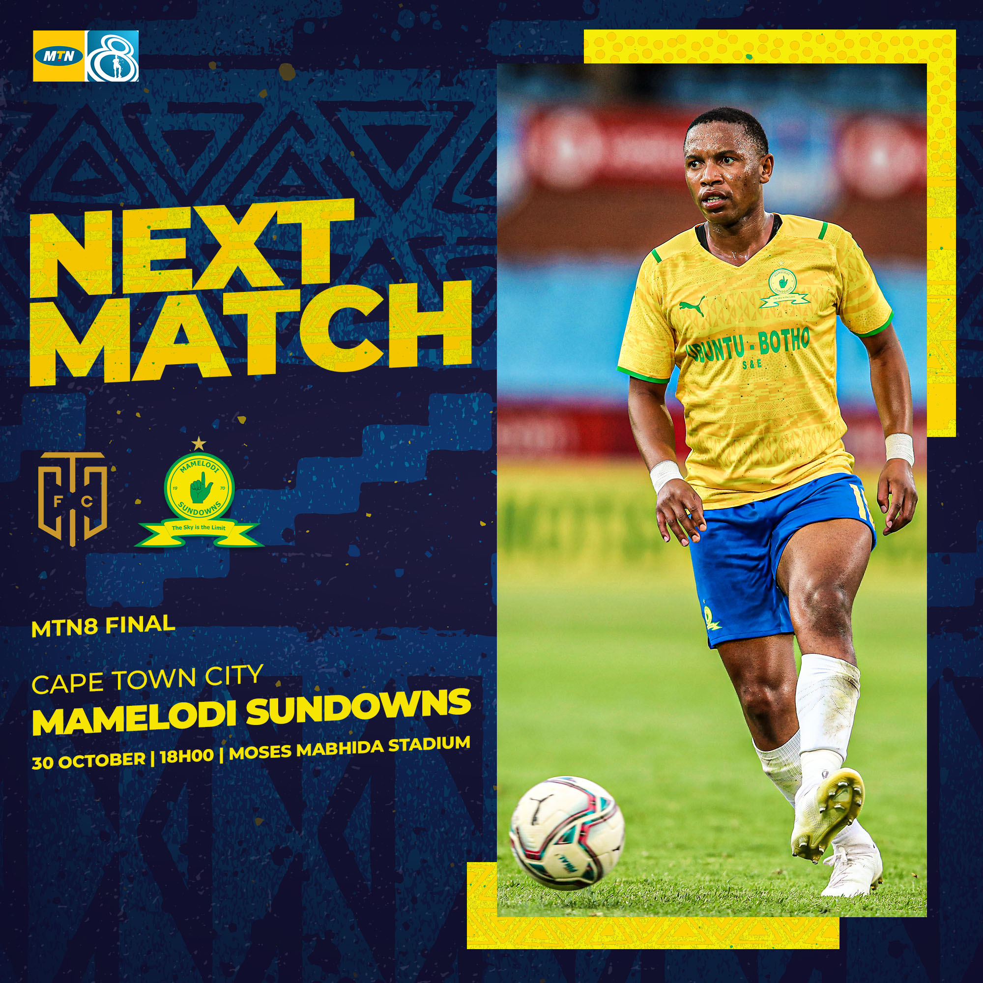 Cape Town City vs Mamelodi Sundowns. The match will be. Todays MTN8 final at the Moses Mabhida stadium gets underway at 1800. Cape Town City 17.